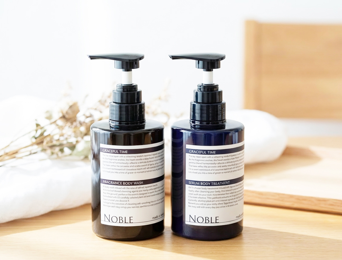 自社ライフスタイルブランド「NOBLE」より、第一弾商品となる【NOBLE ボディウォッシュ〈グレイスフルタイム〉】および【NOBLE ボディトリートメント〈グレイスフルタイム〉】を、2026年1月15日より販売開始いたしました。「NOBLE」は、〈安心・安全・高品質〉な日本製にこだわり、多忙な日常を送る皆様のライフスタイルを上質に彩ることを目指して開発されたブランドです。